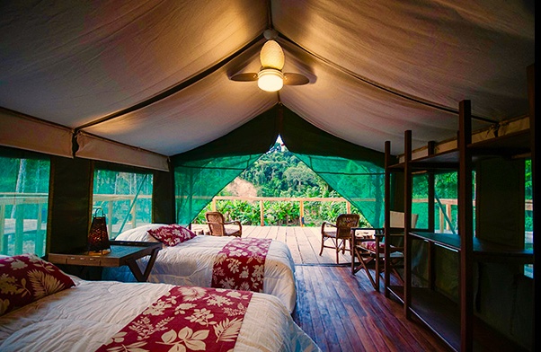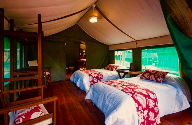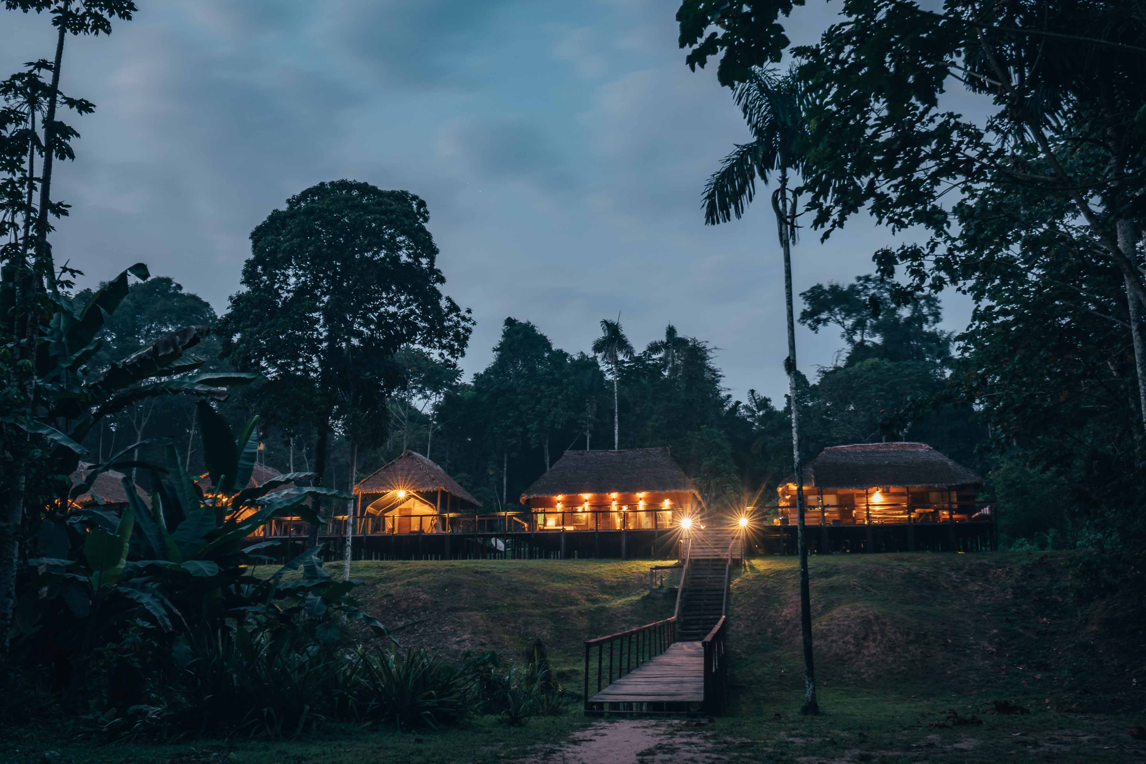 La experiencia de Sécure Lodge tiene como base un alojamiento muy cómodo, construido completamente con madera sostenible cortada por los mismos indígenas en la selva cercana.El albergue cuenta con 3 cabañas estilo safari africano y dos cabañas de madera, con la posibilidad de albergar hasta 6 pescadores + 1 anfitrión + 3 no pescadores (10 personas en total).