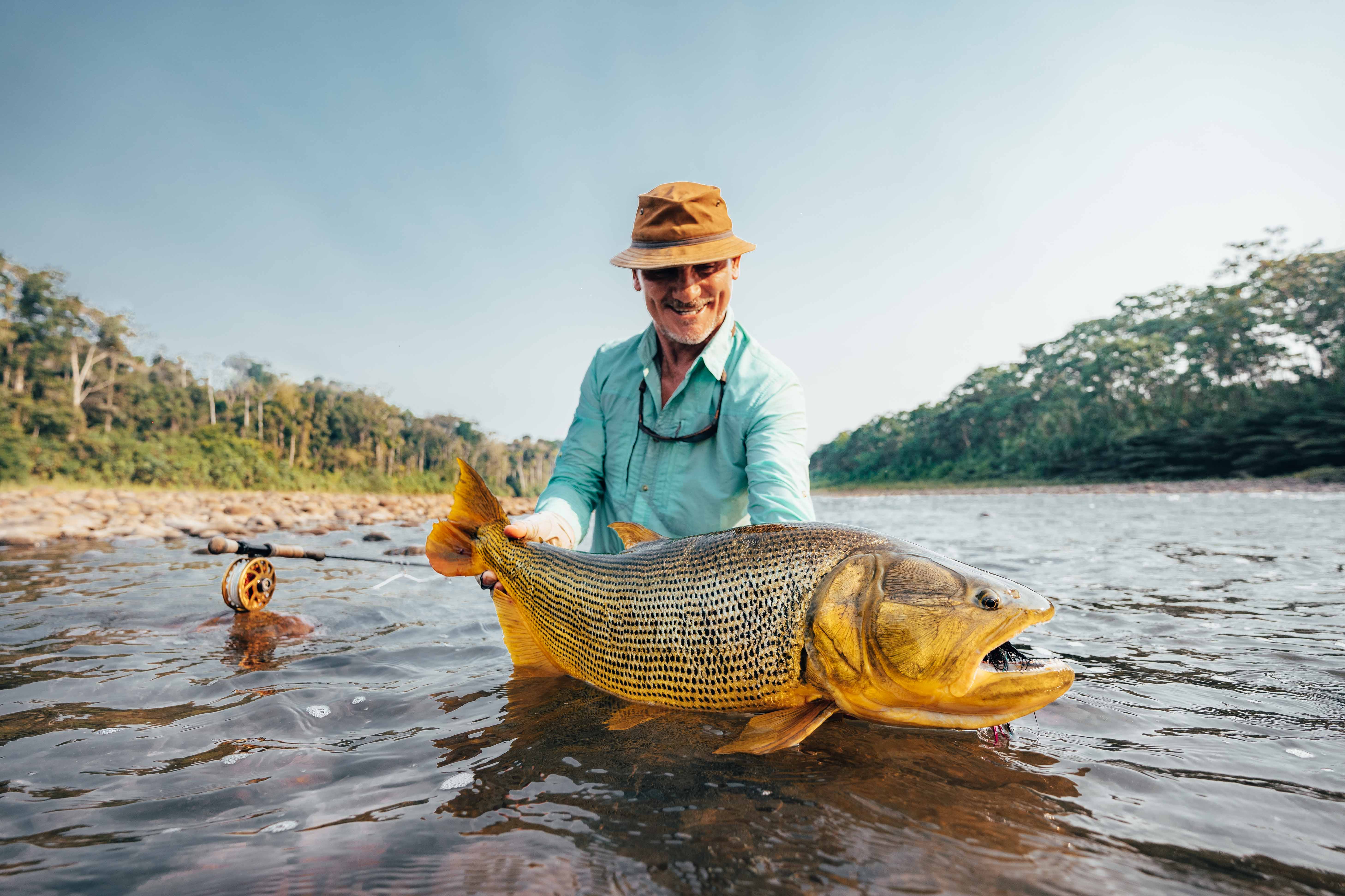 Tsimane practices a strict catch-and-release policy for all species. We encourage avoiding unnecessary handling of the fish, and barbless hooks are mandatory. In this way we not only release the fish with minimal injuries, but also take care of you and fellow angler’s safety. A big fly crashing into somebody at almost 125 miles per hour might result in a serious wound, and a barbed hook is difficult to remove. Handling these fish requires special precautions, not only to avoid harming them but also to prevent injuries to anglers. All our fish species have very strong jaws and razor-sharp teeth. The release of the fish should be done carefully, taking the necessary time for the fish to eventually heal.